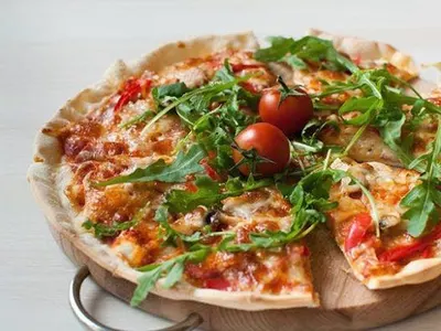 - Smaczna pizza w lokalu z cienkim ciastem i świeżymi składnikami